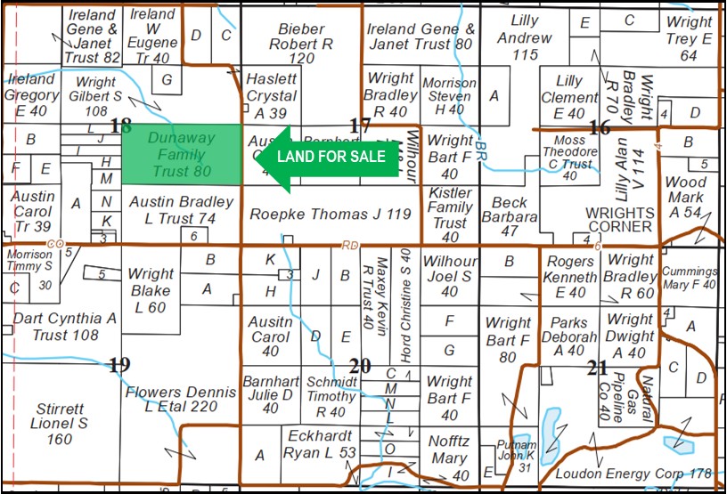 Acreage: 80.00± taxable acres, 40.68± tillable acres, 38.32± wooded acres