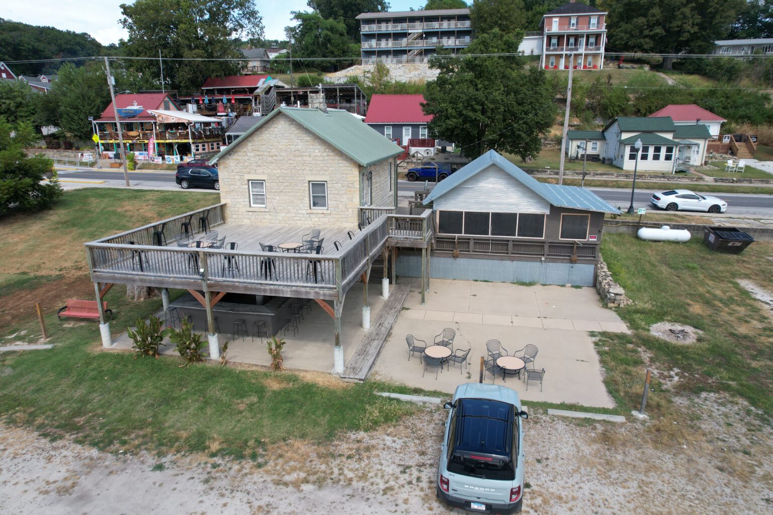Now is your chance to pursue your dream venture in bustling Grafton, Illinois! Formerly the Piasa Winery, this turnkey commercial property is located in the heart of Grafton along Main Street amongst the most popular bars, restaurants and shops. The largest public parking lot in Grafton is located directly behind the property, maximizing the impact of this 75’x90’ lot. Features on the property include: A) Stately 1500sqft stone building with a bar and kitchen area on the main level, 3 restrooms, cozy basement room with electric fireplace (perfect for intimate special events!), trade fixtures convey including beer and wine coolers. B) 28’x28’ covered outdoor patio that comfortably accommodates guests spring through fall with portable heaters to use in cooler months. Trade fixtures convey including TV, patio furniture, tables, etc. C) 30’x30’ deck recently installed with a great view of the river. D) Outdoor bar below the deck. City water and electric. Windows, furnace and tankless water heater new in 2019.