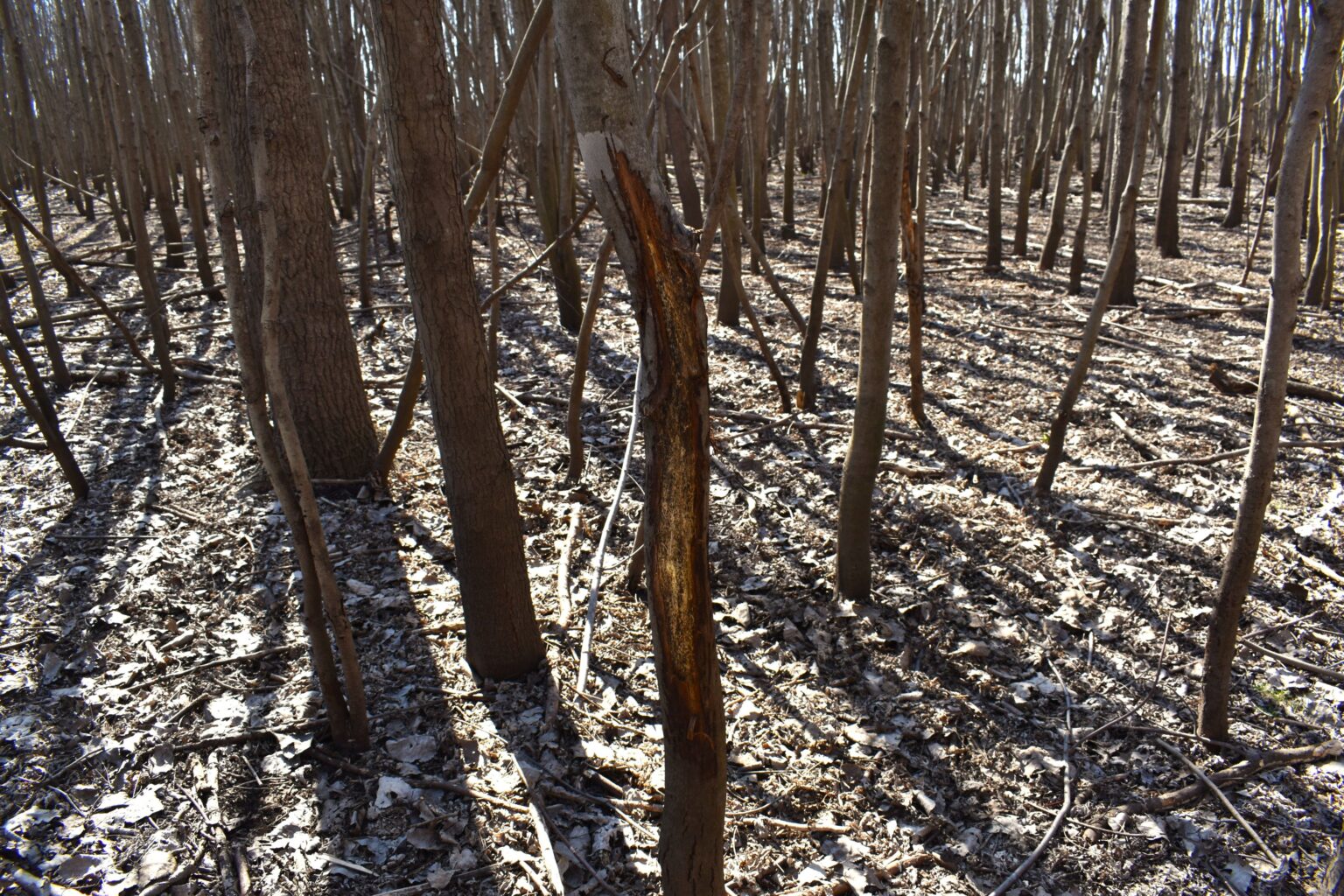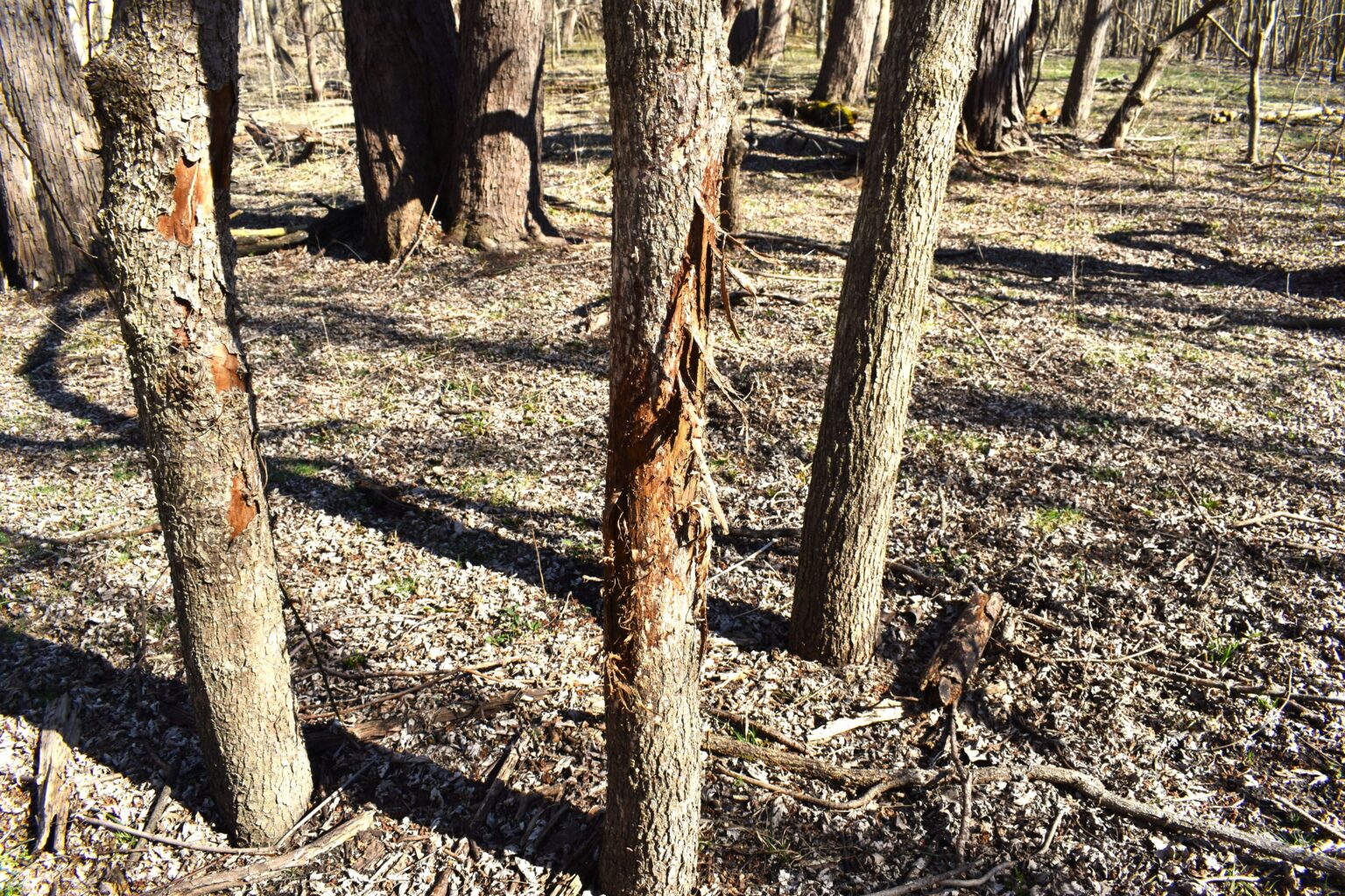 The Southern edge of the farm is open with a trail leading North into the wooded acres. Surrounded by water and tillable fields, this is a well-trafficked wildlife thoroughfare. Rubs, tracks and deer scat are everywhere. The proximity to the river has helped limit the pesky invasive species like autumn olive and honeysuckle.