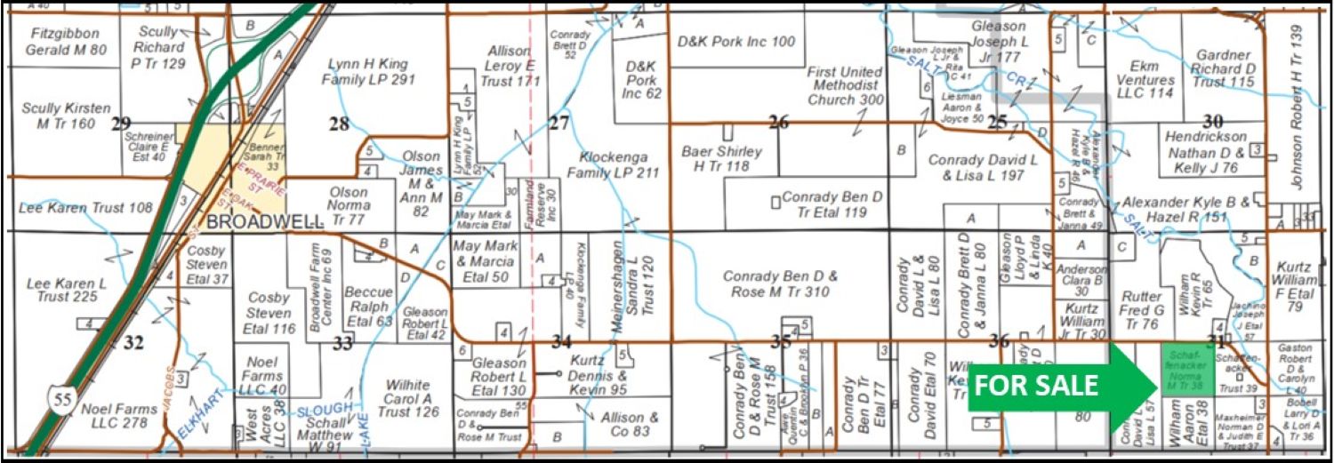 Property Location & Directions: Property is located along Route 12 approximately 4± miles East of Broadwell in Logan County, IL Section 31 – Township 19N – Range 2W.